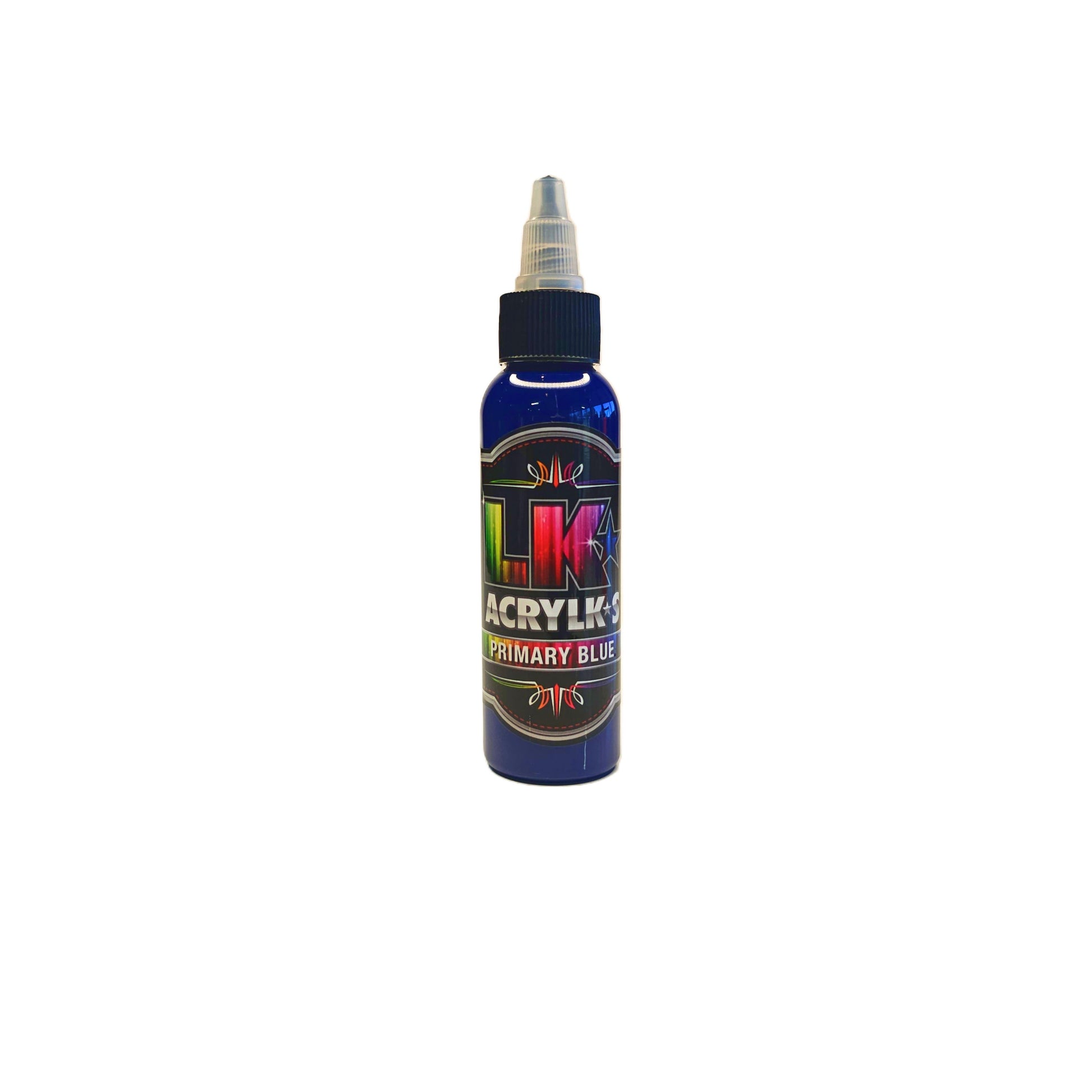 LK Acrylks Primary Blue is a vibrant neutral blue that can be mixed to a huge variety of green and purple hues without noticeable loss of chroma.